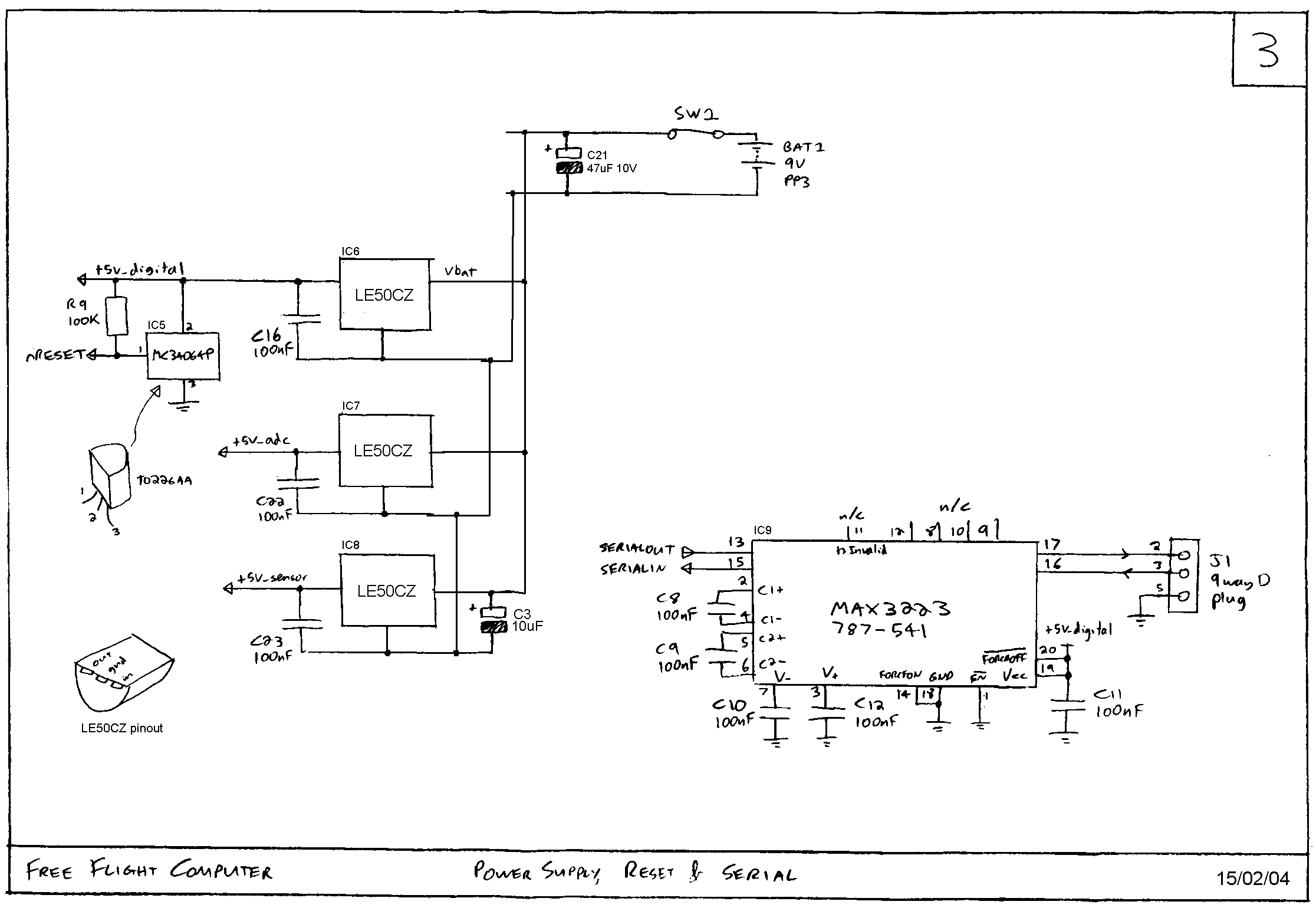 Sheet 2 of 3 Sheet 3 of 3 Originally (four years ago!) drawn on paper I then scanned them in as 256 colour greyscale and decreased colour depth to 16 colours. I then manually reduced the colour depth to just black and white by setting the palette myself. Since then I have cut, paste, redrawn and added text using Paintshop Pro as the circuit has evolved.